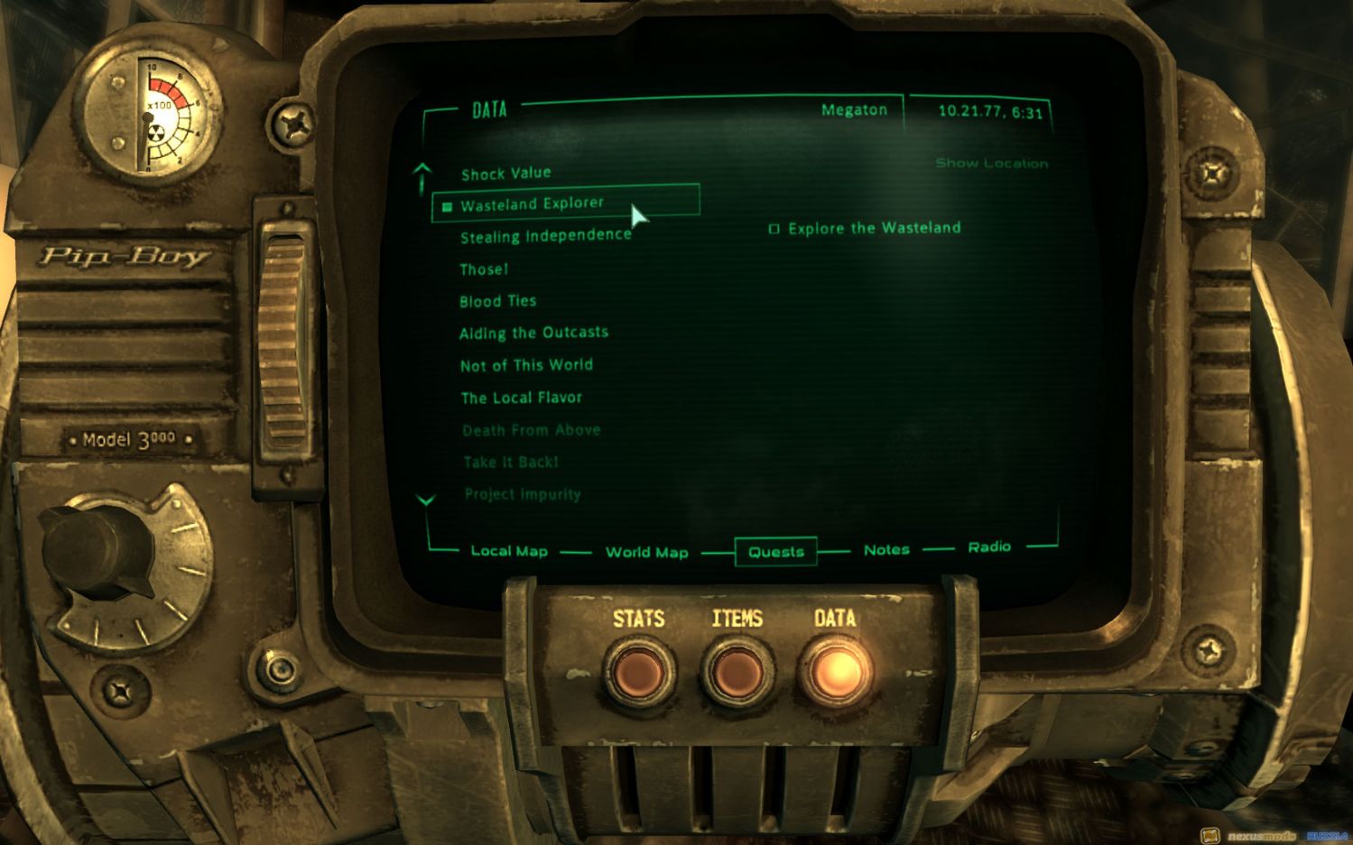 Вам кажется площадь New Vegas маловата? Нечего исследовать? Тогда этот квест для вас - Исследователь пустоши. Просто кликните на квест, когда почувствуете, что вам больше нечем заняться, кроме как исследованием мира.