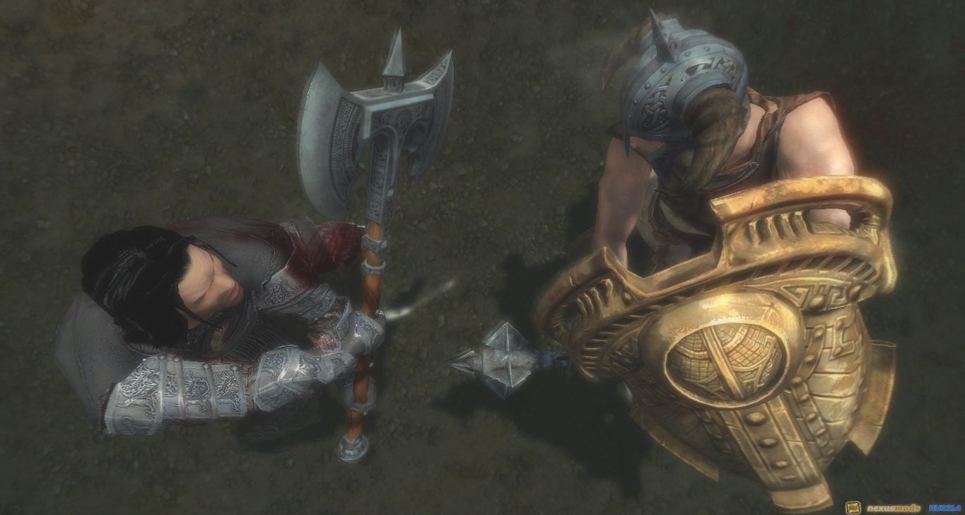 Данный мод изменяет стандартную анимацию блока двуручным оружием в Skyrim.