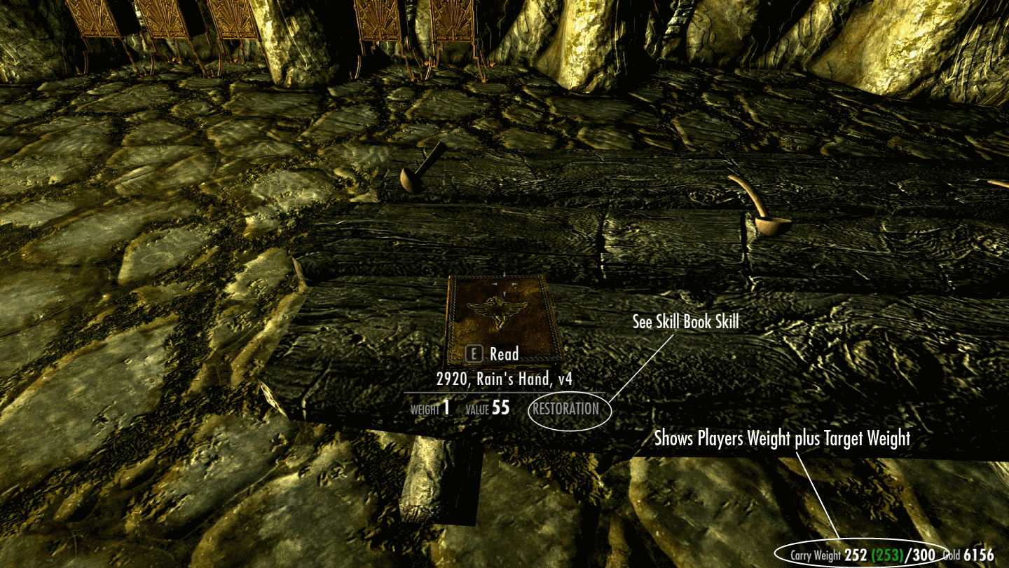 Данный плагин облегчит всем игрокам в Skyrim жизнь, добавляет виджет, который при наведении на предмет показывает его характеристики.