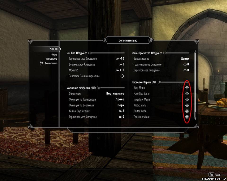 3. Загрузить игру, зайти в настройки SkyUI и снять все галочки: (смотрите скриншоты)