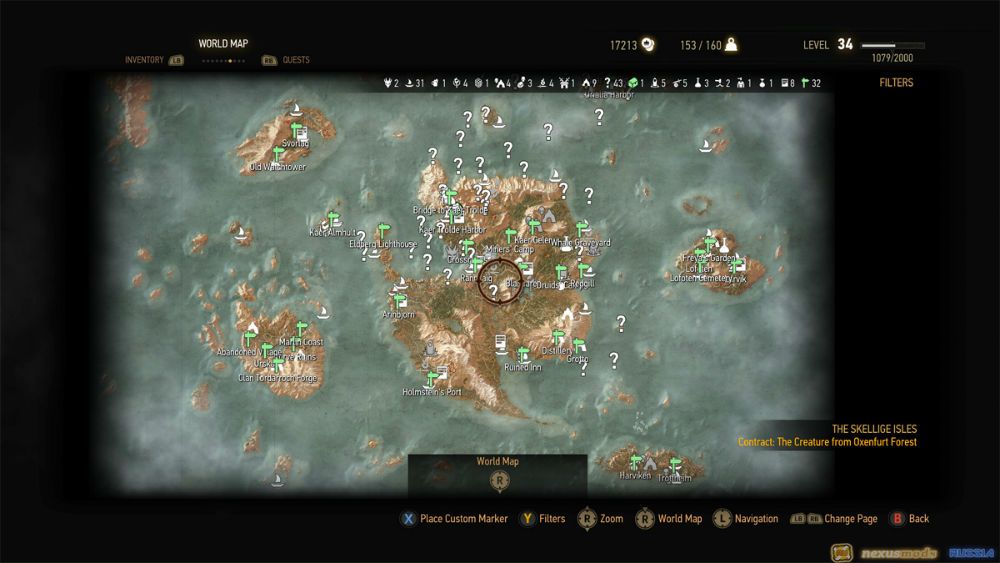 - Значение minZoom в файле mapMenu.ws установлено как 0,75 f, это значение является достаточным, чтобы увидеть всю Велену/Новиград и почти весь Скеллиге. Если хотите, просто измените это значение, чтобы изменить предел масштабирования (меньшее значение масштабирует дальше)